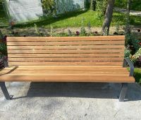 Gestell aus Flachstahl feuerverzinkt, optional mit Pulverbeschichtung. Standardfarbe anthrazit-eisenglimmer, ähnlich DB 703. Ortsfeste Montage erforderlich. Die Bank wird zerlegt geliefert.