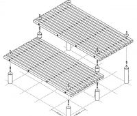 Die Bodenstützen (BS) und Stützmodule (SM) sind in der Länge aufeinander abgestimmt. Gestell aus Rundrohr feuerverzinkt und pulverbeschichtet, anthrazit-eisenglimmer, (aehnl. DB 703), Durchmesser 89 mm. Abdeckkappen aus Aluminium. Je Sitzebene 4 Zugstangen mit Distanzringen aus Kunststoff. Mit verlängerten Bodenstützen zum Einbetonieren. Die Sitzebene und Stützen werden separat zur Montage vor Ort geliefert.