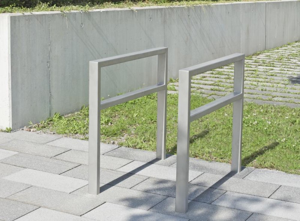 Anlehnbügel aus Rechteckrohr (70 x 40 mm) mit Querstrebe.