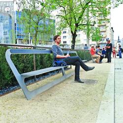 STAUSBERG durfte dabei einen bedeutenden Teil der Neugestaltung beisteuern – zum einen Sitzbankzeilen aus Metall (siehe Bild rechts), zum anderen klassisch und zeitlose Holzbänke im inneren Teil des Schillerparks. Besonderheit dieses Projekts war die eigens für den Schillerpark entwickelte Bank "Amedeo".