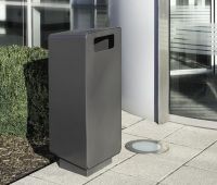 Bei Abfallbehältern geht der Trend zu größeren Volumina, da dies eine kostengünstige Bewirtschaftung unterstützt. Dem wird der neue Abfallbehälter EUbox der Serie A17 mit 80 Liter Inhalt gerecht. Der Korpus ist komplett verzinkt und farbbeschichtet und besitzt eine große verriegelte Frontür. Das Leeren erfolgt über die Entnahme eines Innenbehälters aus Blech. Bei diesem Behälter sticht vor allem die neuartige Gestaltung mit den abgerundeten Kanten und der sich nach hinten verjüngenden Form ins Auge. Ein Behälter für eine besondere Umgebung!