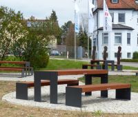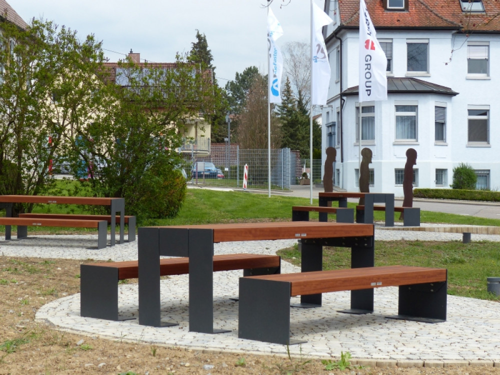 Arnold Umformtechnik, eine Tochtergesellschaft im Würth Konzern, betreibt mehrere Standorte im Nordosten Baden-Württembergs. Bereits seit 2018 wurden zum Beispiel in Dörzbach und Forchtenberg die Außenanlagen im Rahmen eines umfassenden Konzepts erneuert und mit attraktivem Mobiliar ausgestattet. Seither kommen dort Sitzgruppen aus der Nusser Bankserie INLINA zum Einsatz. Dank der stabilen Konstruktion und den lasierten Bankleisten aus FSC®-Hartholz ist dies eine langlebige Ausrüstung, was zur Philosophie des Unternehmens gut passt.