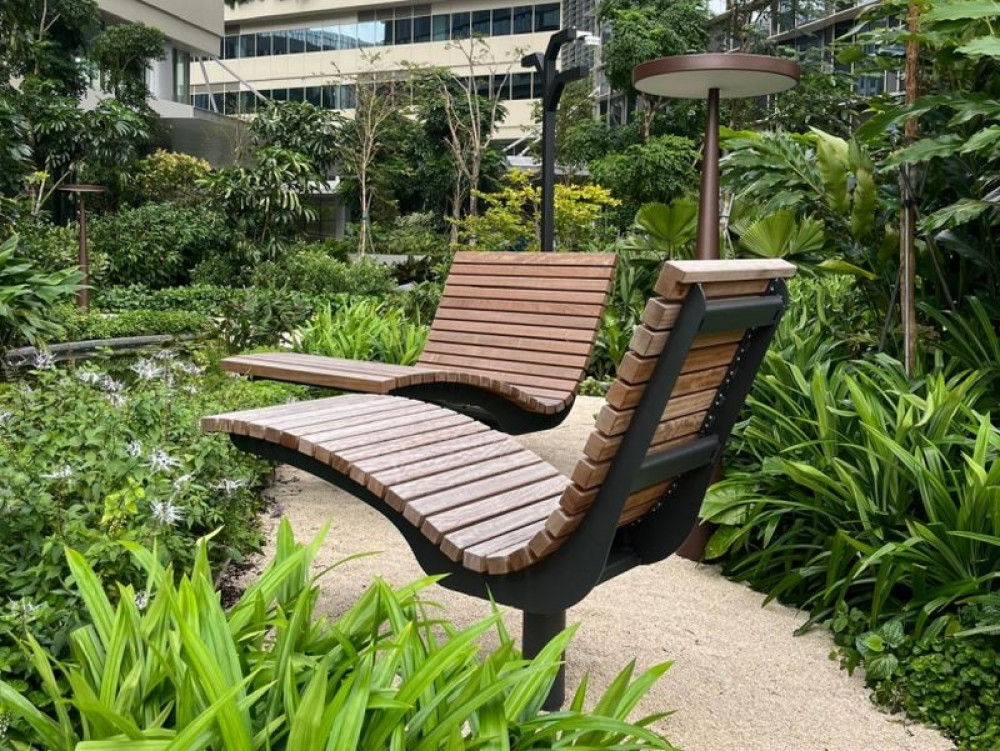 Die Millionenmetropole Singapur ist eine sehr dynamische Stadt, die sich laufend weiter entwickelt und wächst. 2025 konnte Nusser Stadtmöbel für ein komplett neu erbautes Stadtquartier etliches Mobiliar liefern. Dazu gehören Liegen vom Typ Silencio, Sitzbänke INLINA und Abfallbehälter. Alle Produklte sind in DB 703 farbbeschichtet und mit FSC®-Hartholz ausgestattet. Diese Kombination ist auch bei tropischen Witterungsbedingungen extrem langlebig. Ein tolles Projekt!