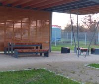 In einem Gewerbegebiet im badischen Eschbach wurde 2025 ein ansprechender öffentlicher Raum geschaffen, der LKW-Fahrern und Arbeitenden dort als Aufenthaltsort dienen kann. Der so genannte Tulpenpavillon mit Sitzgelegenheiten sowie die begleitende "Kunst am Bau" wurden von Bruno Feger und Ralf Wehrmuth entworfen. Als Mobiliar hat man sich für die Sitzgruppe DESSAU und dazu passende Hocker entschieden. Dieses ist robust und designorientiert zugleich. Zum Einsatz kam die Ausführung aus unbehandeltem Nadelholz, was den Bezug zum benachbarten Schwarzwald verstärkt.