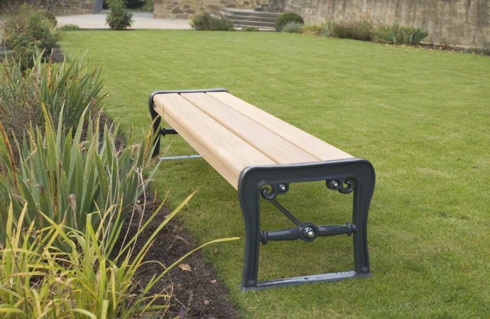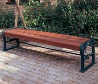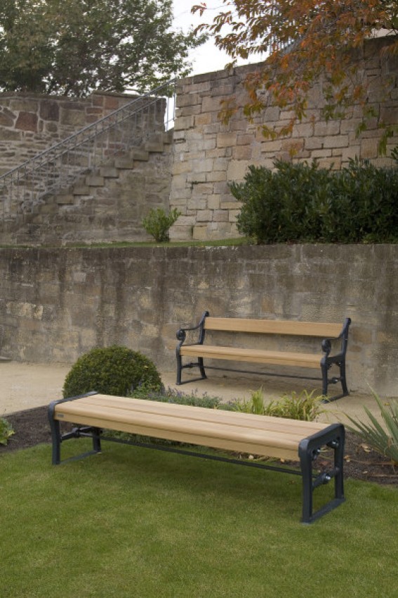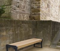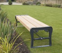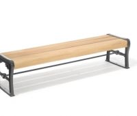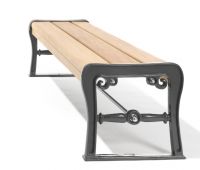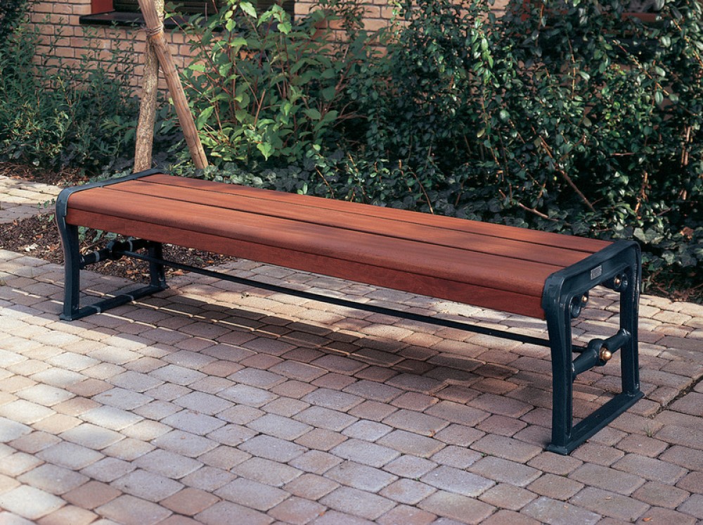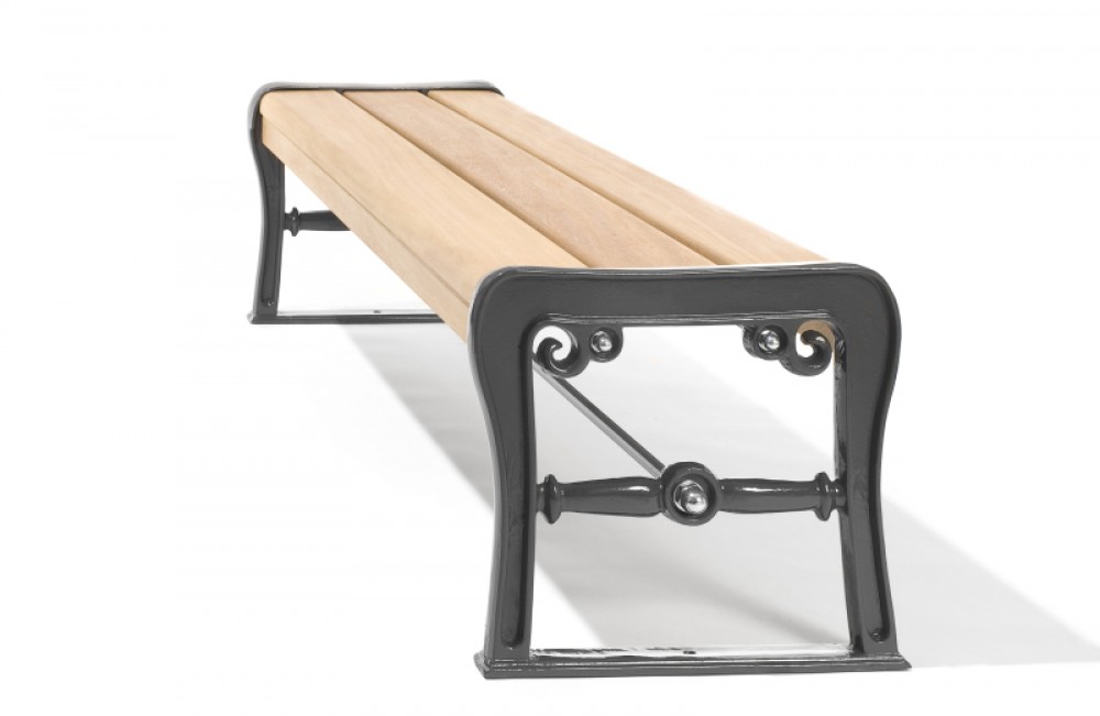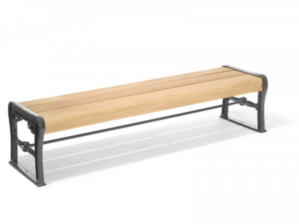 Bench with frame made of cast aluminum, powder coated with dark metallic gray (like DB 703). Frame normally embedded with anchors