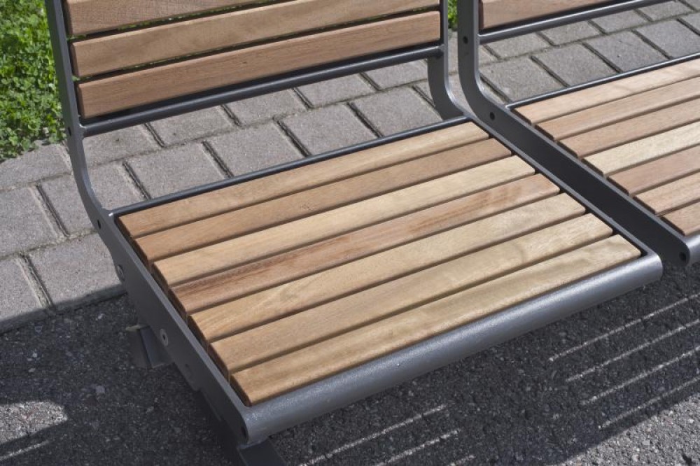 Very variable bench model. Single-seater wooden support on a steel substructure.