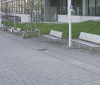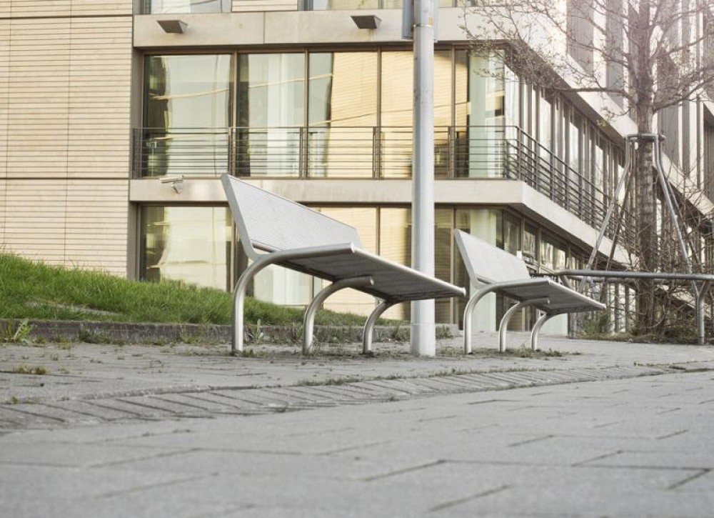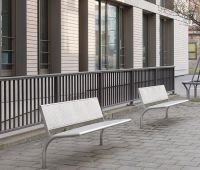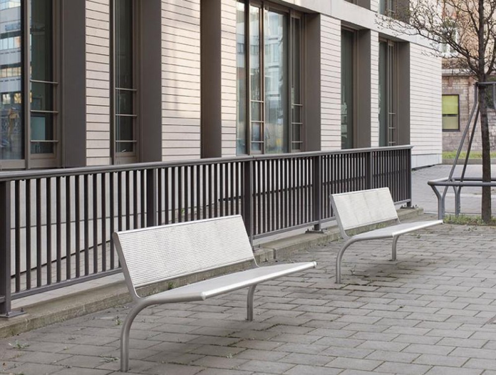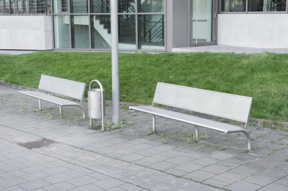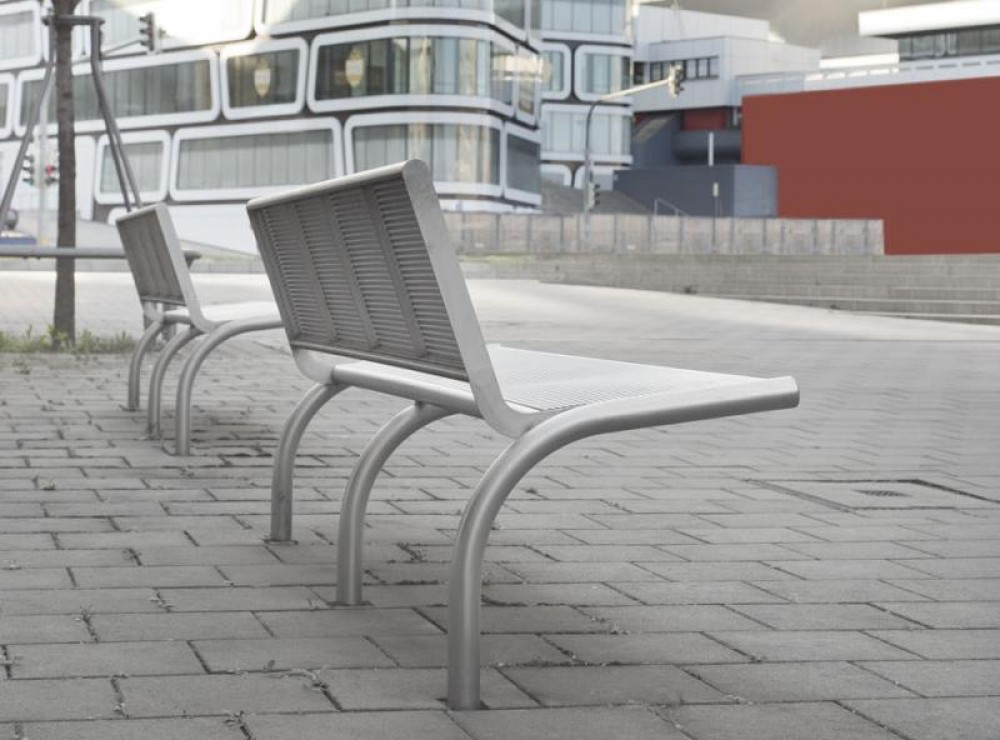 Bench B500V-SLBML stainless steel, square perforated sheet metal, with backrest, extended legs for root fixing, length 1600 and 1900 mm