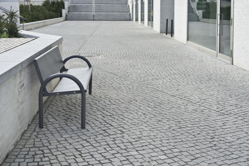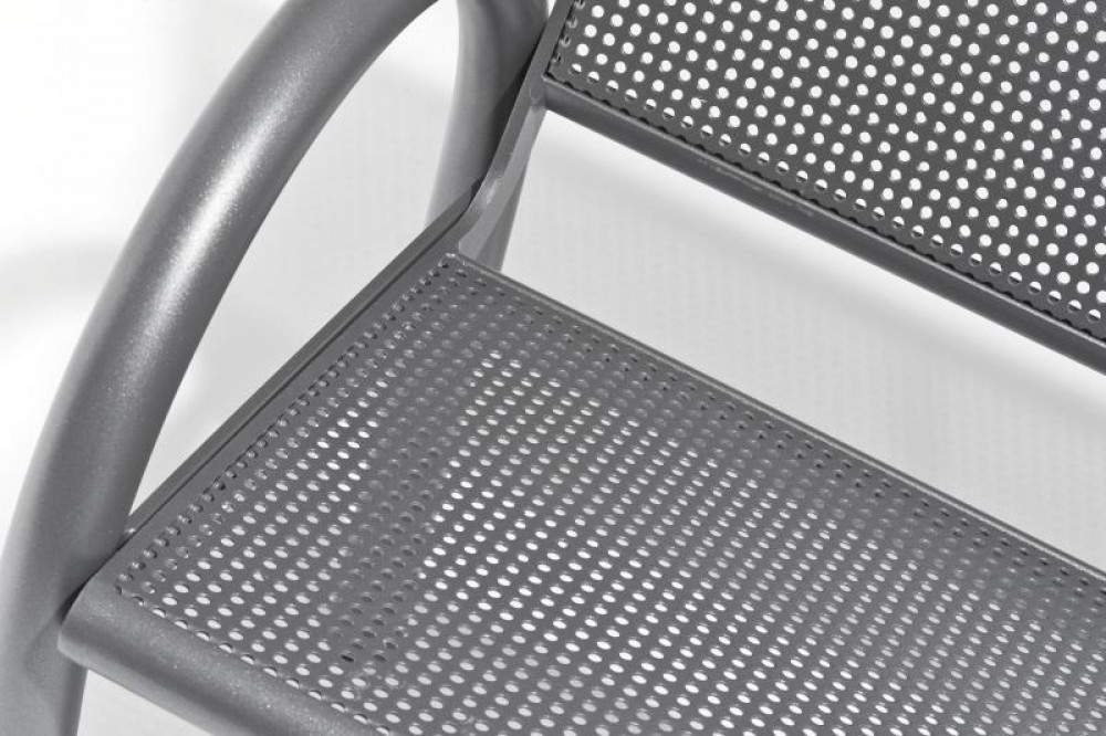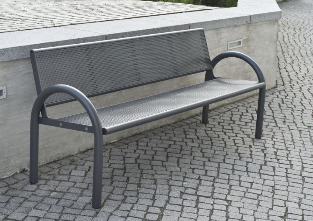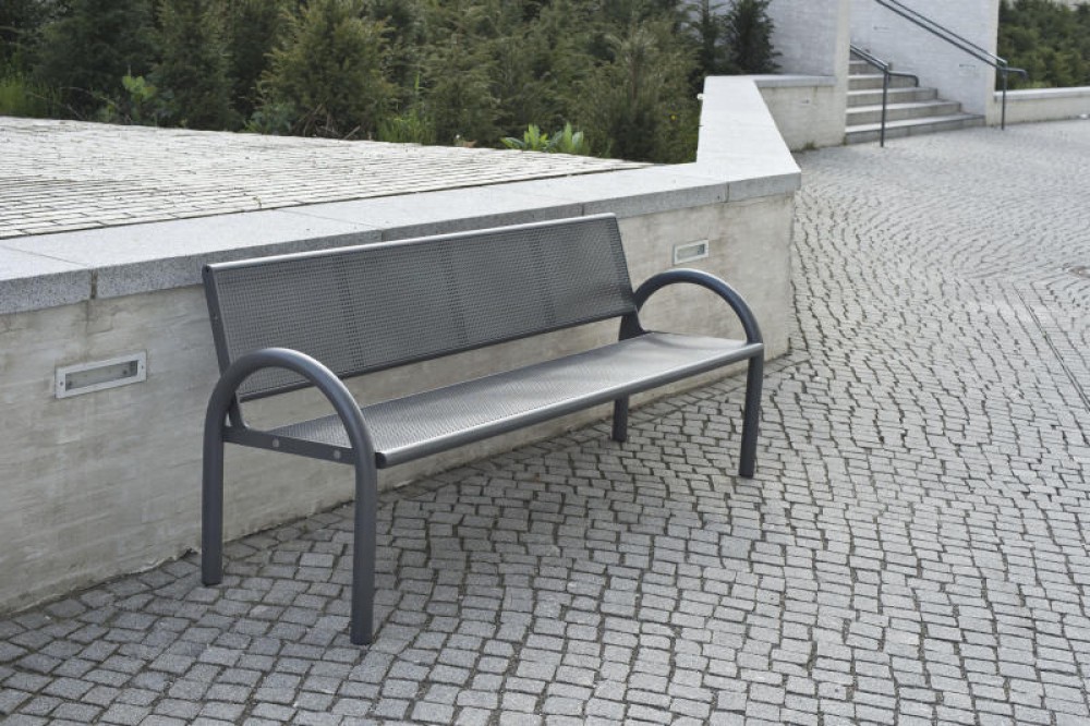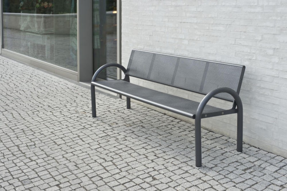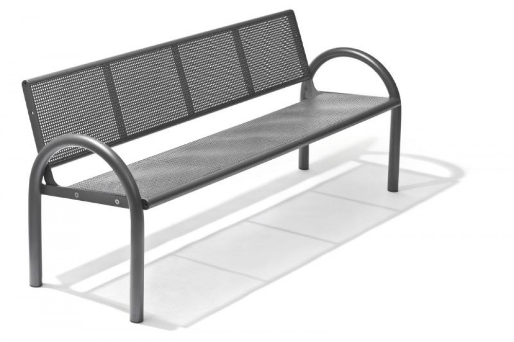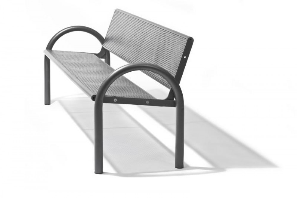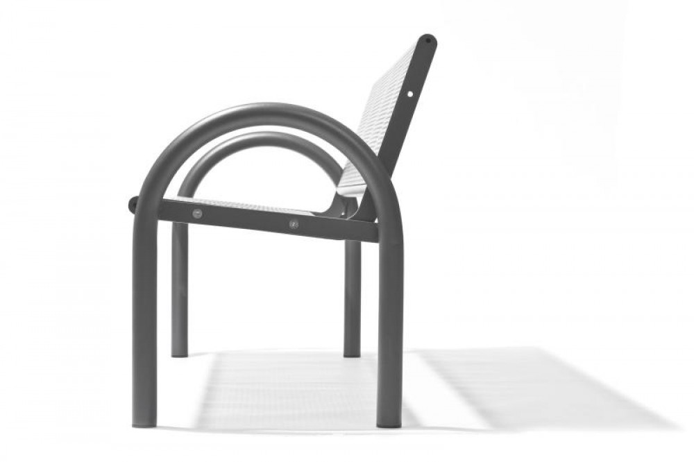 Bench B510S perforated sheet (square perforation 7 mm) with round backrest and armrest.