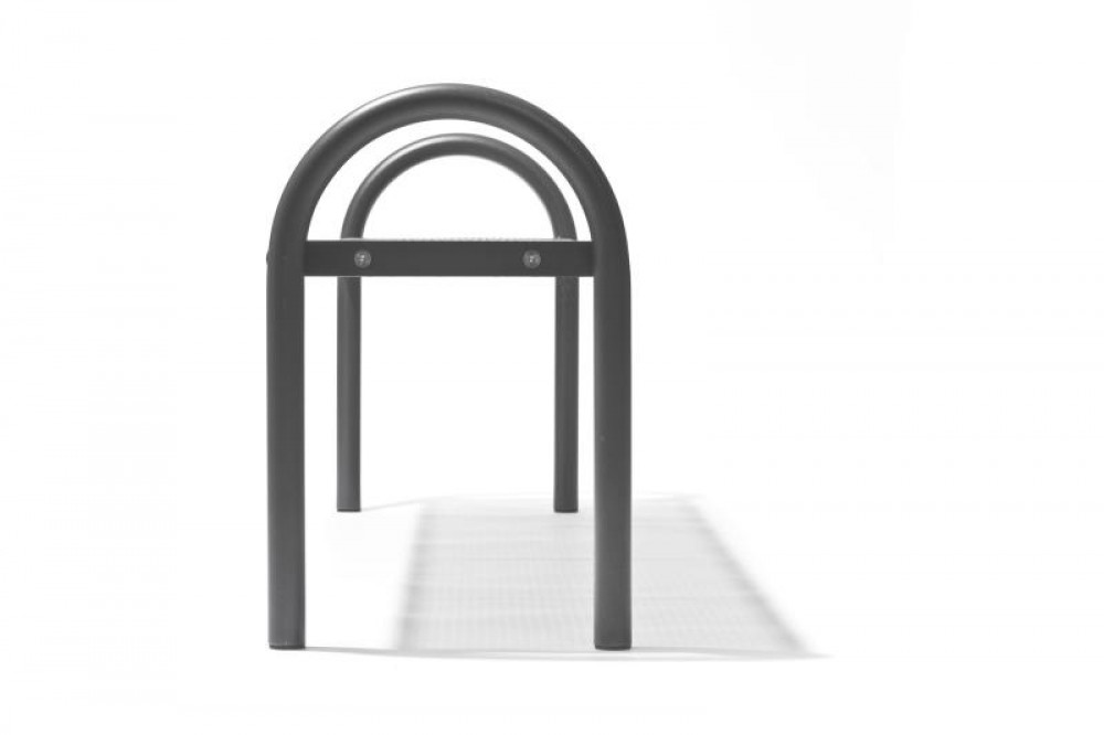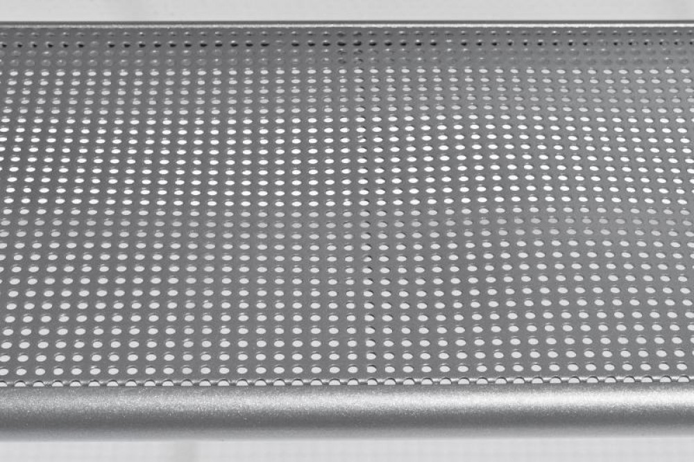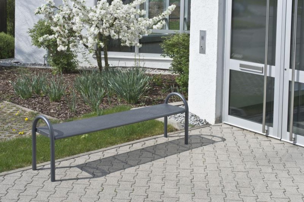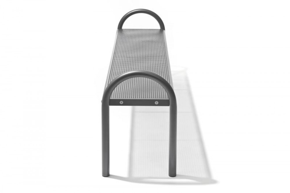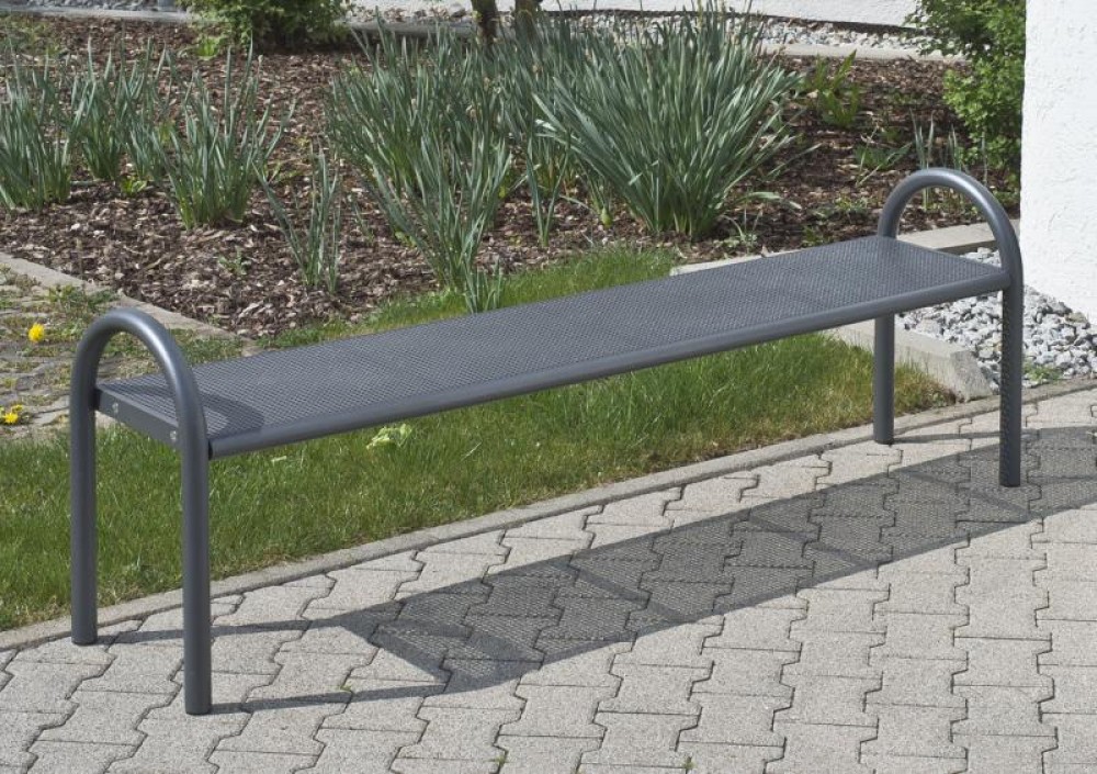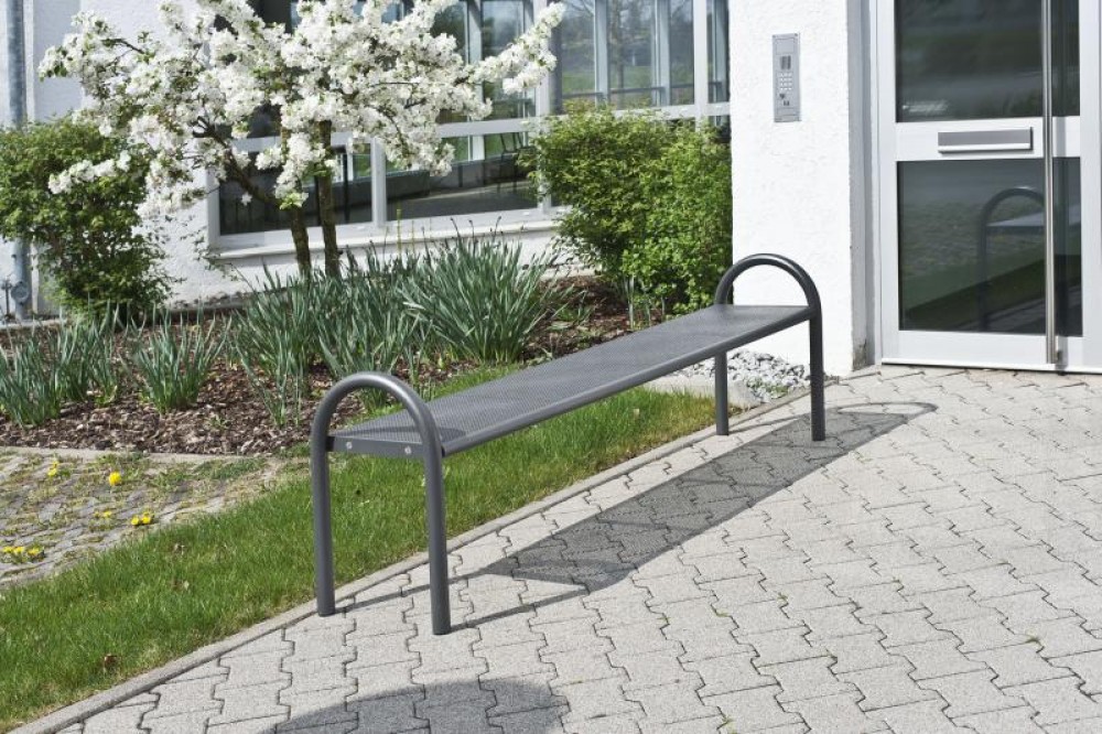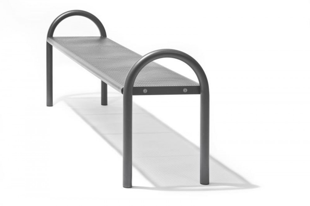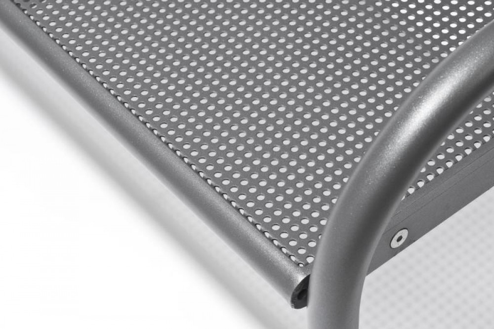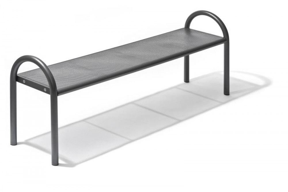Bench B510S perforated sheet (square perforation 7 mm) without backrest, with round armrest.