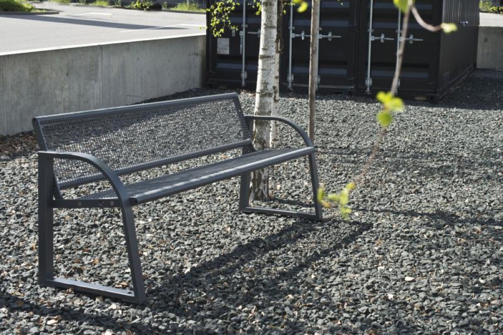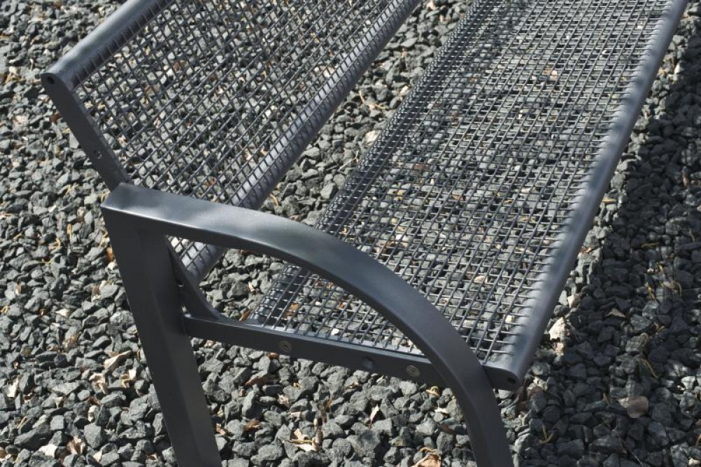 Bench B520S-BDGML, steel with wire mesh, with backrest, with chalet armrest, optionally surface-mounted or mobile, hot-dip galvanised, powder-coated in DB 703 (anthracite micaceous iron ore)