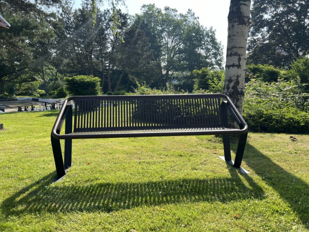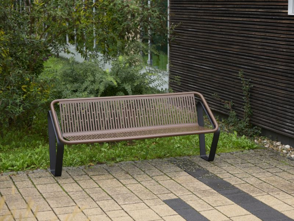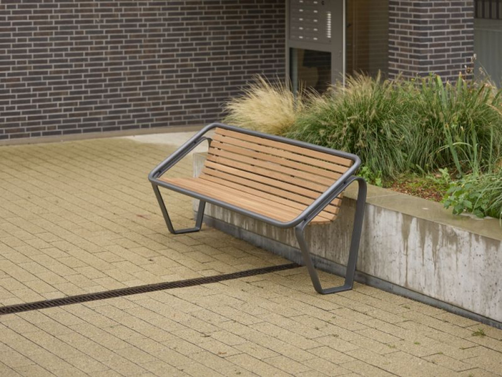Seat made of perforated stainless steel sheet, coated with RAL or DB colour – choose your favourite colour, or wooden slats made of FSC®-certified hardwood (SCS-COC-001802) – slats 1775 x 45 x 28 mm.
