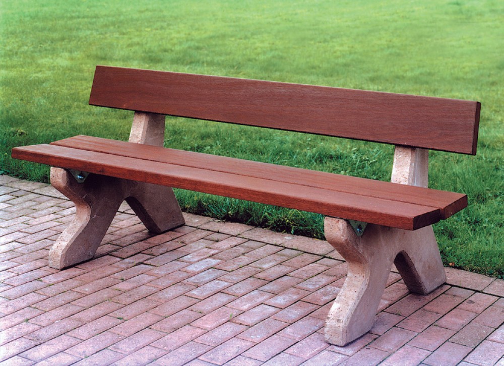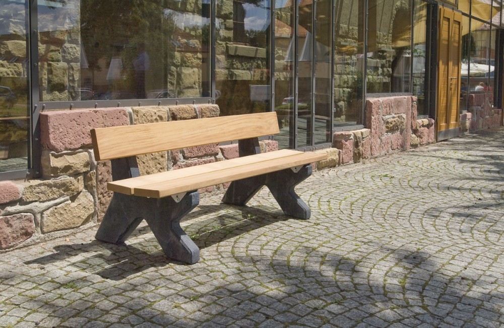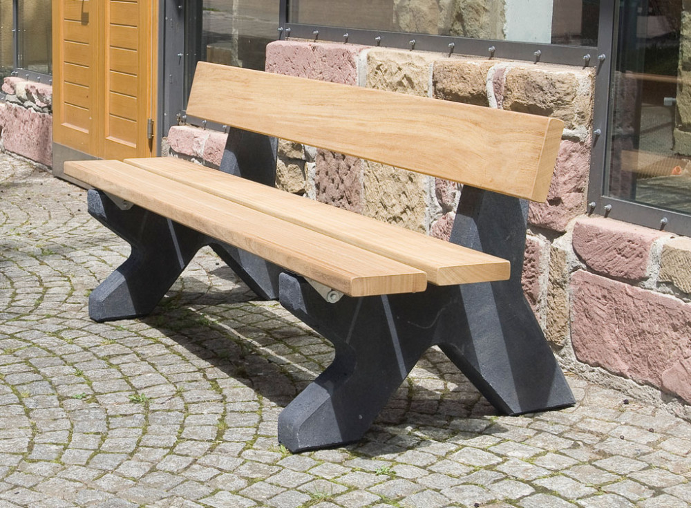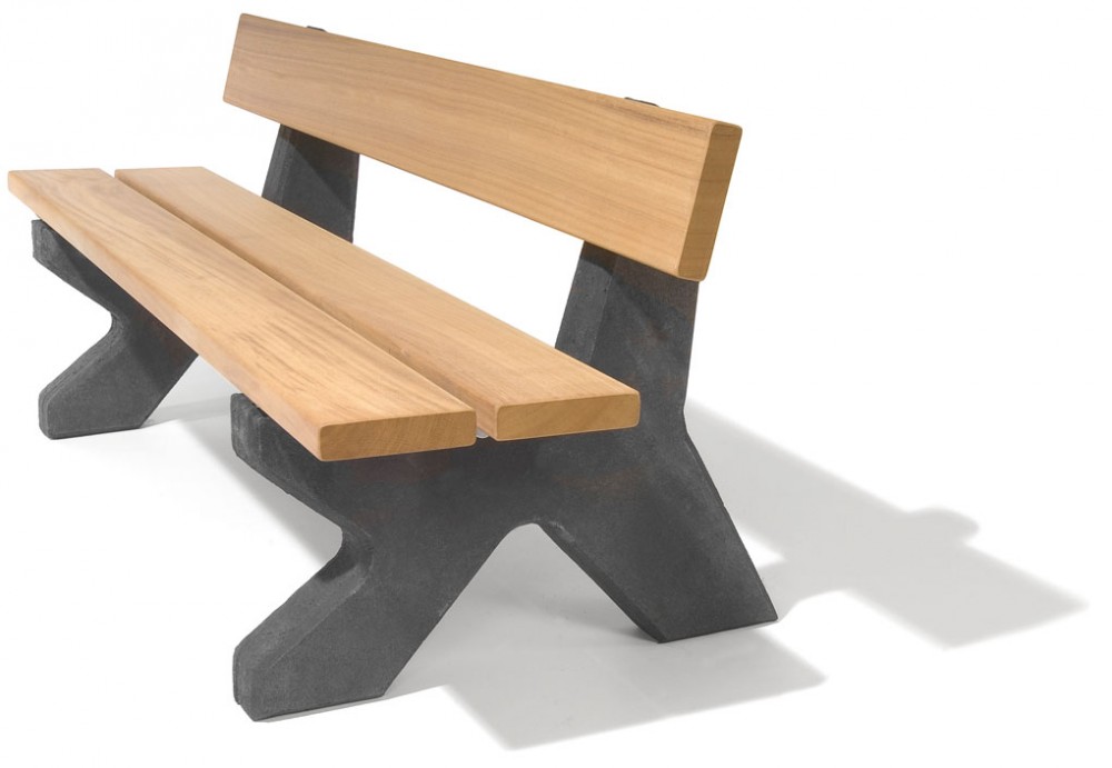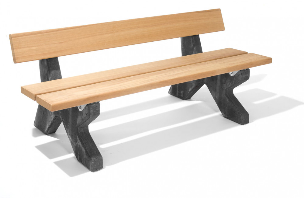Bench with colored concrete stand (dark gray) and hot dip galvanized fittings. Bench is freestanding and will be delivered as subassemblies.