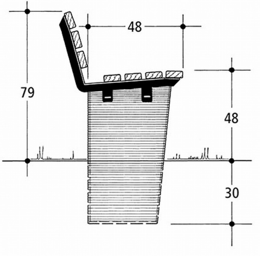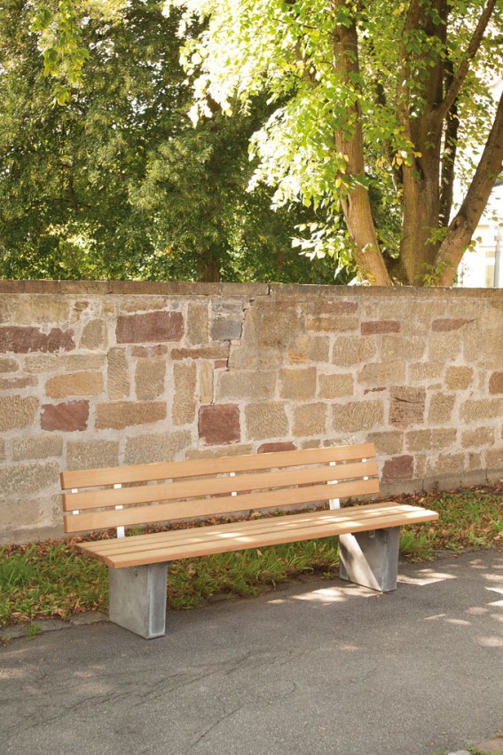 Support easily removable and stackable, concrete feet made of exposed concrete, for fixed installation, bevelled on all sides.