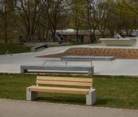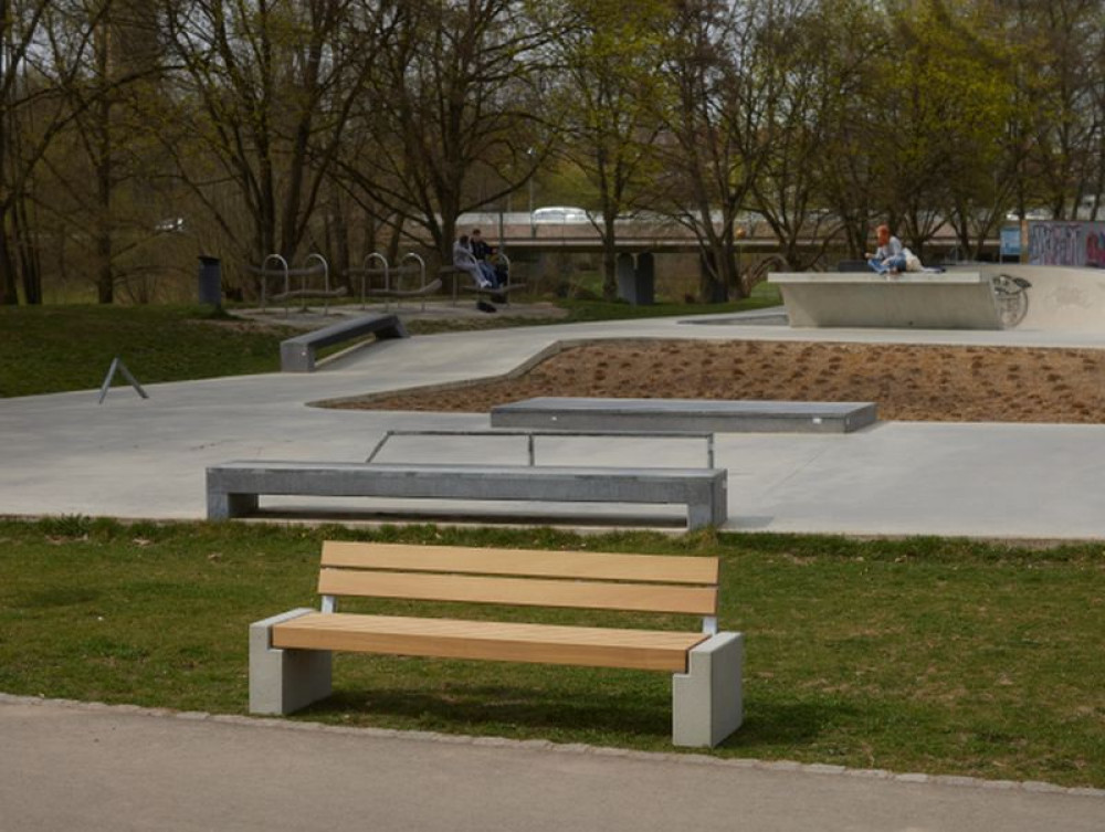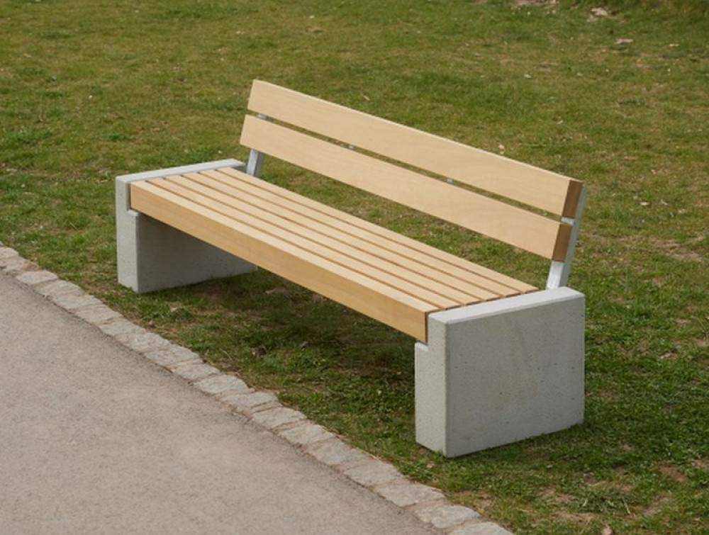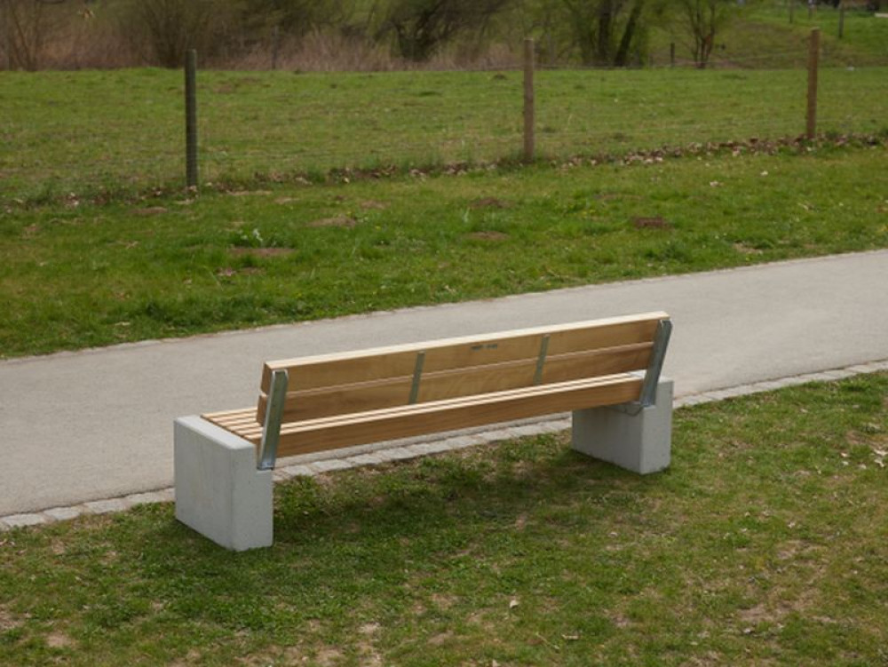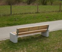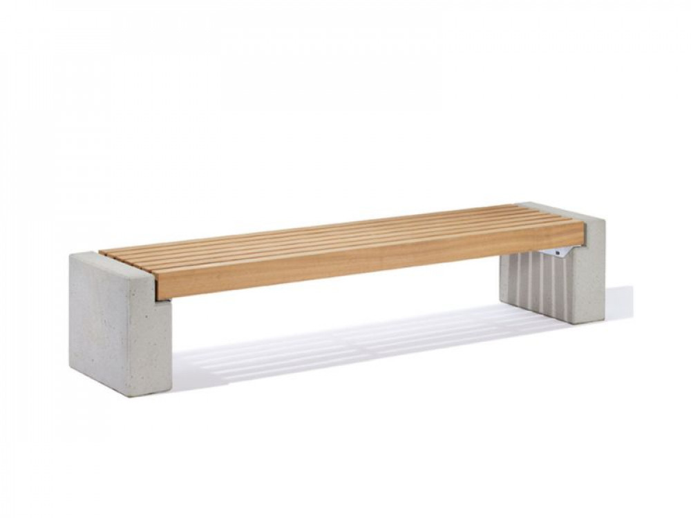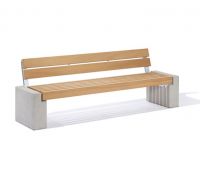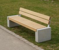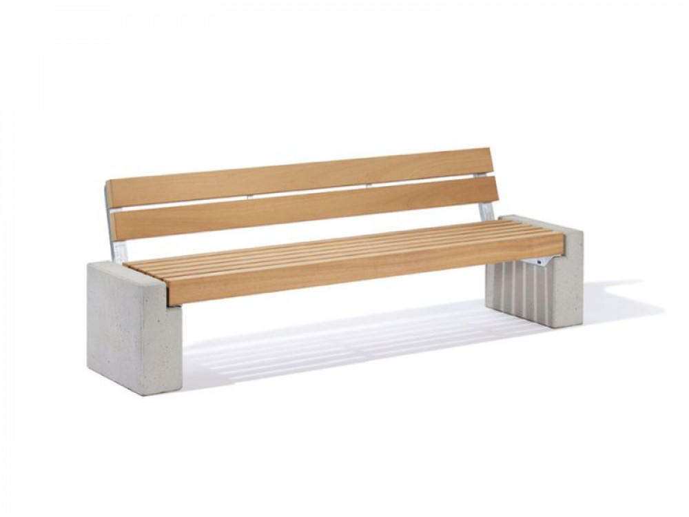 Bench bench with or without backrest, with chamfered concrete stand. Fittings are hot dip galvanized. Bench normally surface mounted with anchors.