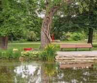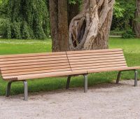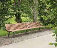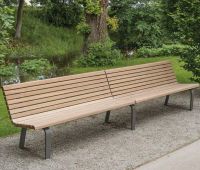 Bench with frame made from flat bar steel, hot dip galvanized, optionally powder coated in DB 703 (dark metallic gray). Surface mount is necessary. Bench will be delivered as subassemblies.