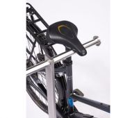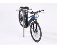 Effective, beautifully shaped bicycle rack made of stainless steel. Due to the variable saddle suspension, two bicycles can be parked safe and secure.
