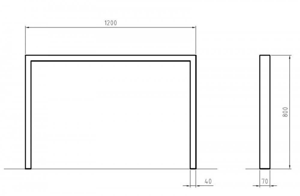 Leaning bracket made of rectangular tube (70 x 40 mm) without cross brace.