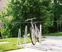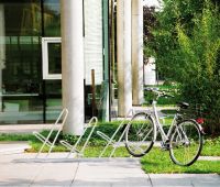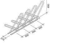 Bicycle racks are available with a length of 1150 mm (3 bikes), 1650 mm (4 bikes) 2150 mm (5 bikes) for even height positioning of bikes. For up/down positioning of bikes the lengths are 950 mm (3 bikes), 1350 mm (4 bikes), 1750 mm (5 bikes) and 2150 mm (6 bikes). The dimensions of a single rack are 650 x 140 x 720 mm. Those lengths can be infinitely combined with each other to get the desired length.