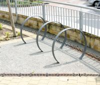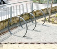 Circular bicycle stand made from flat steel bar (cross section: 60 x 10 mm), hot dip galvanized and optionally powder coated in RAL-/DB-colors. Stand normally embedded.