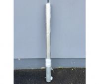 Barrier post – round tube G9.1-H76, Diameter 76 mm, made of polished stainless steel, removable with ground socket (hot-dip galvanised) for setting in concrete, self-locking, welded steel cap, height above ground approx. 900 mm.