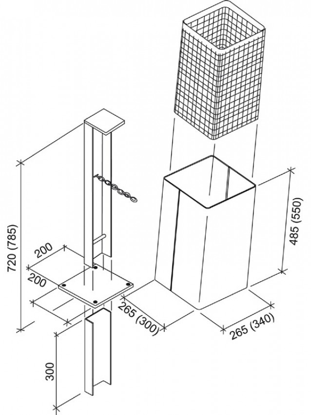 Litter Bin, square shaped on U-shaped post