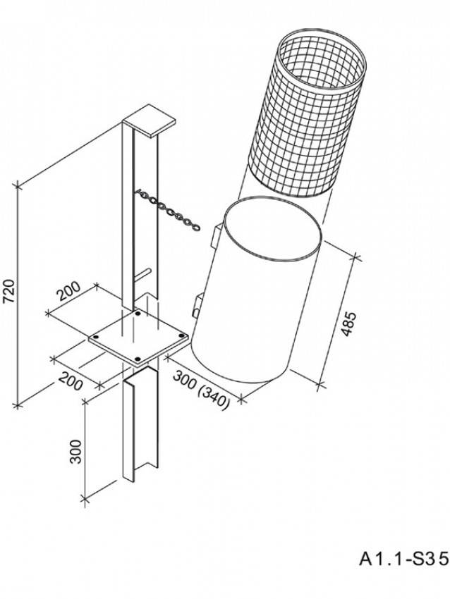 A1.1-S35 / A1.1-S45 / A1.1-S60: Stand for setting in concrete, base plate for dowelling (optional). Capacity: 35, 45, 60 litres.